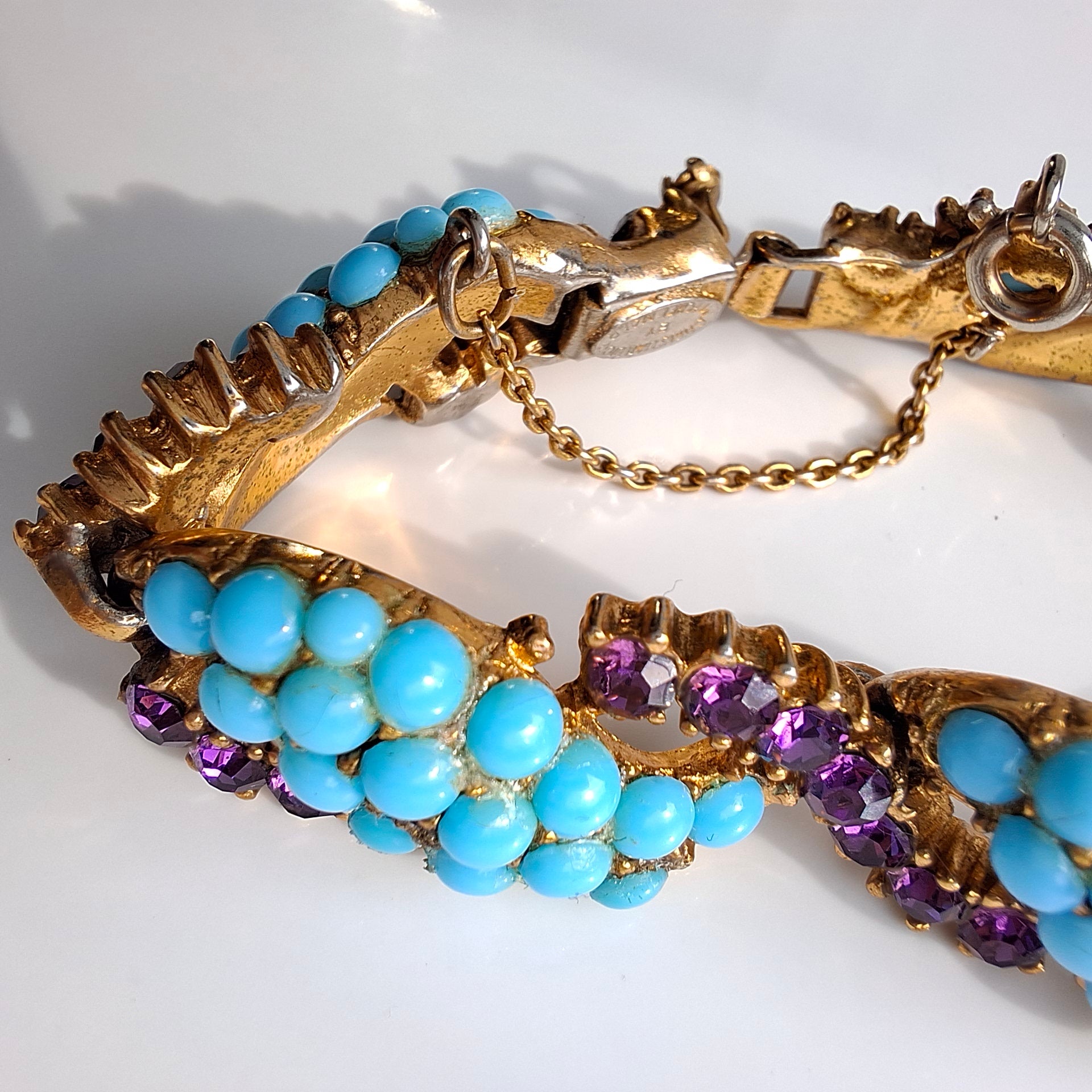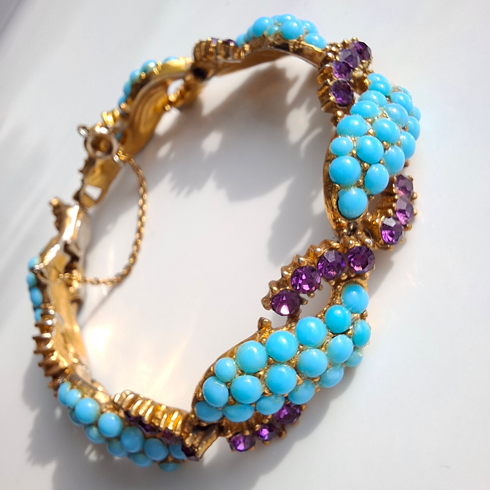 1950s Christian Dior by Mitchel Maer Turquoise & Purple Crystal Bracelet