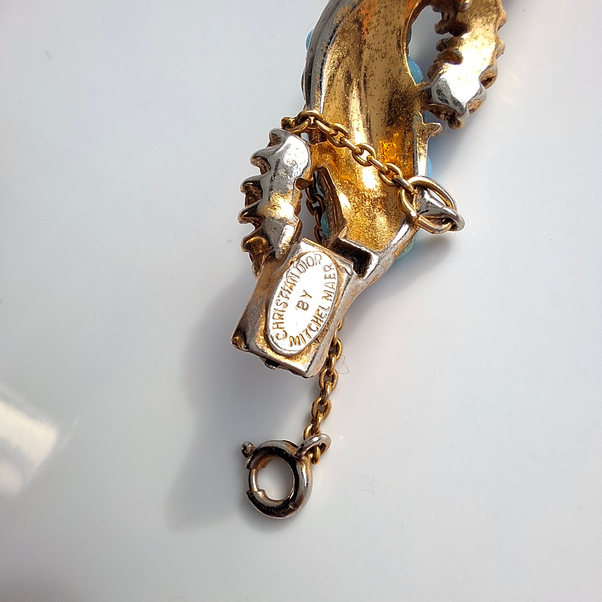 Classic 1950s Christian Dior bracelet by Mitchel Maer. Inset with faux turquoise beads and purple crystal. With plaque 'Christian Dior by Mitchel Maer.'
