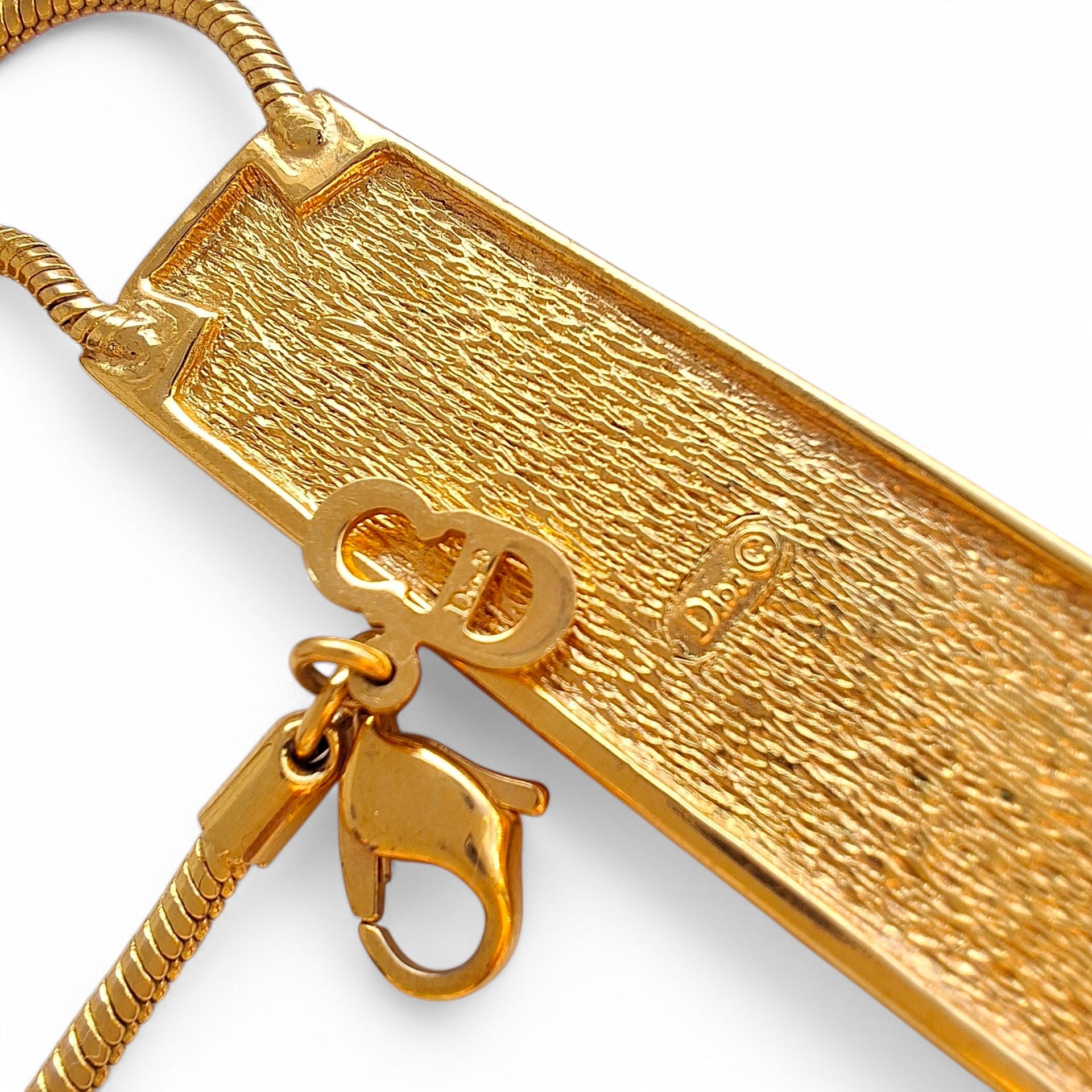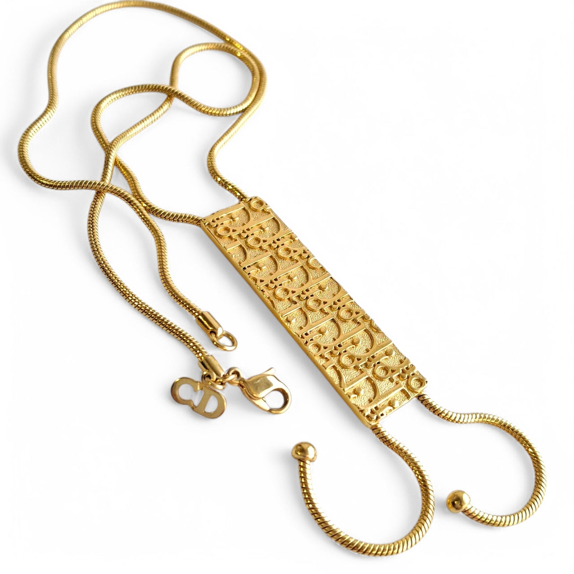 Christian Dior gold plated monogram logo trotter pendant necklace. The measurement of the chain around the neck is 44cm. The pendant is 1.6cm wide x 5.2cm long.