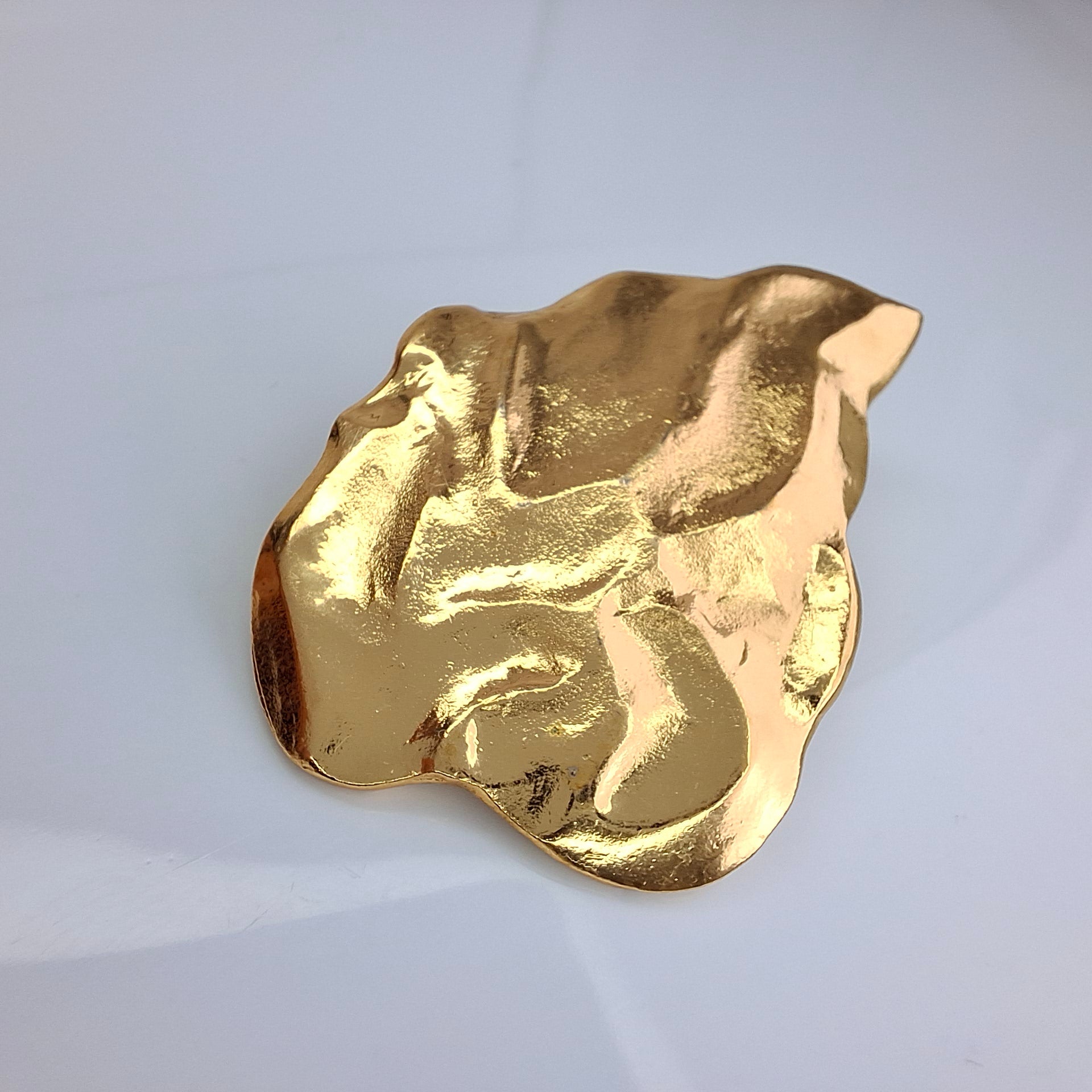 Vintage pin brooch by Yves Saint Laurent. Gold plated textured leaf design. Excellent condition. Measures 4.2cm x 3cm.
