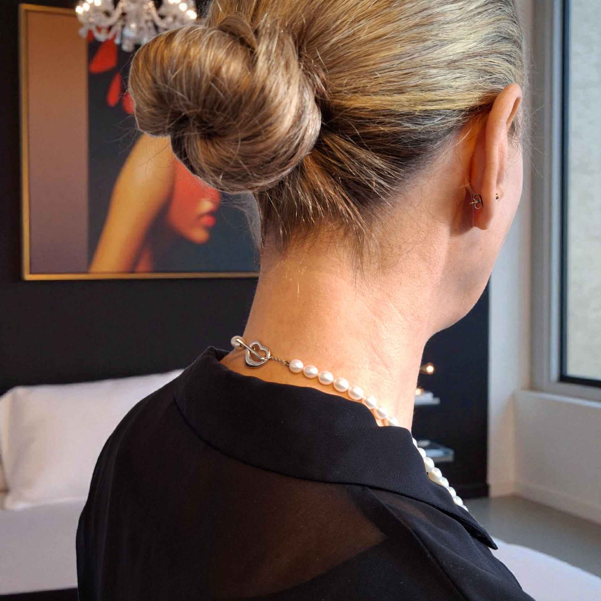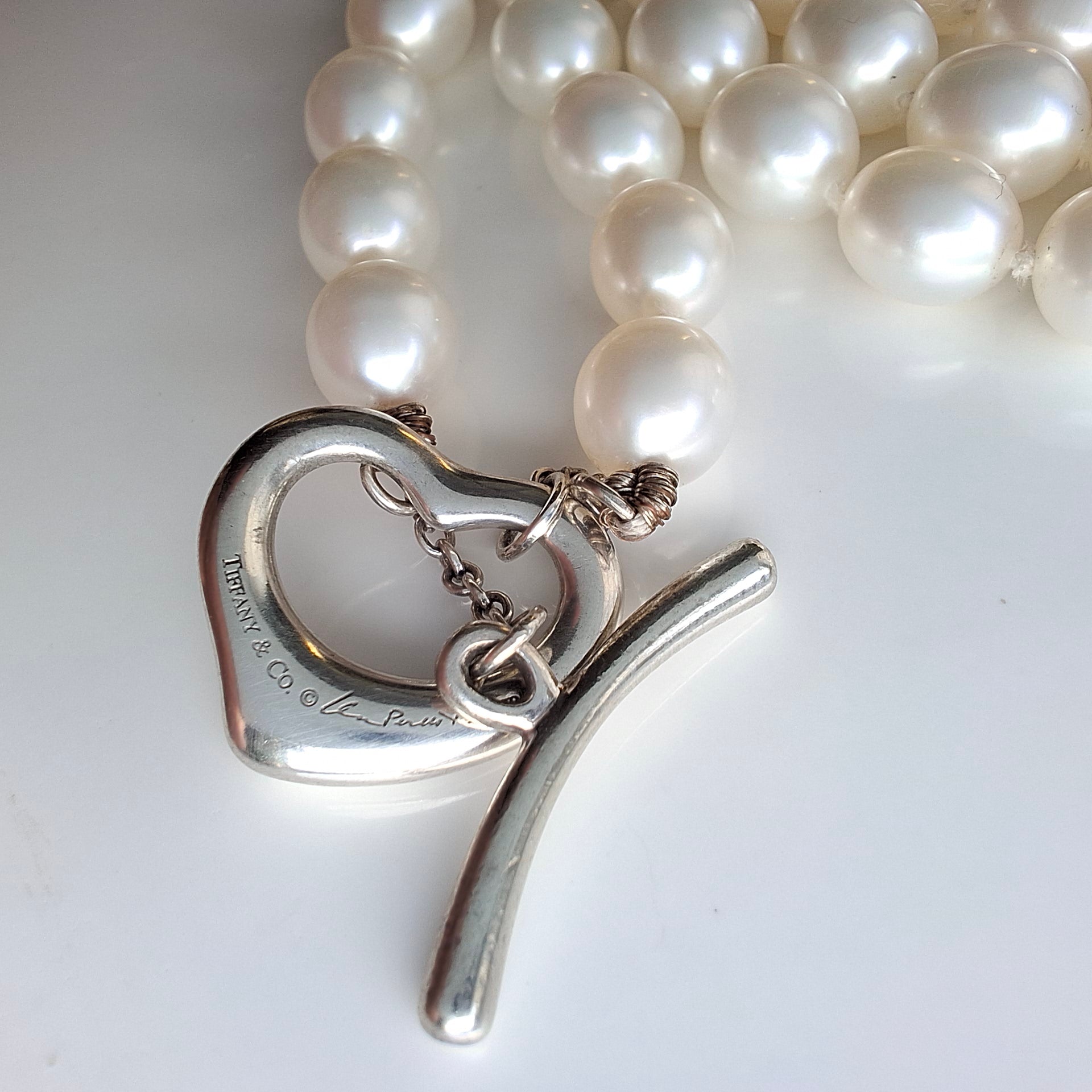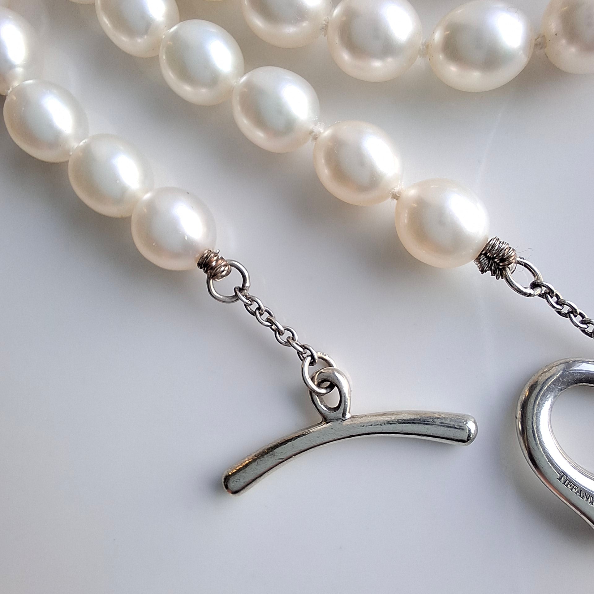 Elsa Peretti Tiffany & Co Open Heart Silver Toggle Freshwater Pearl Necklace