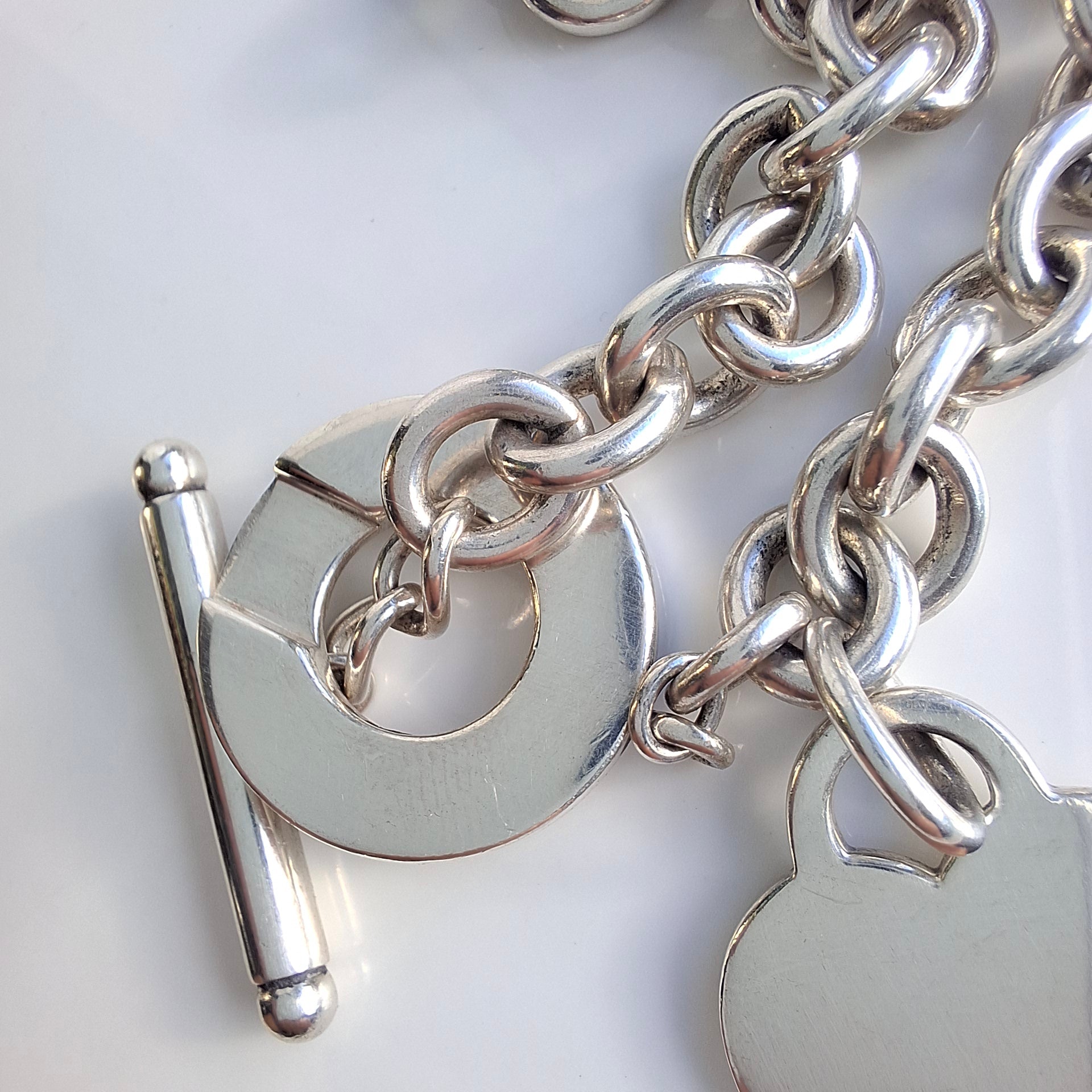 Silver Tiffany & Co. Heart Tag Toggle Charm Bracelet with Original Pouch and Box