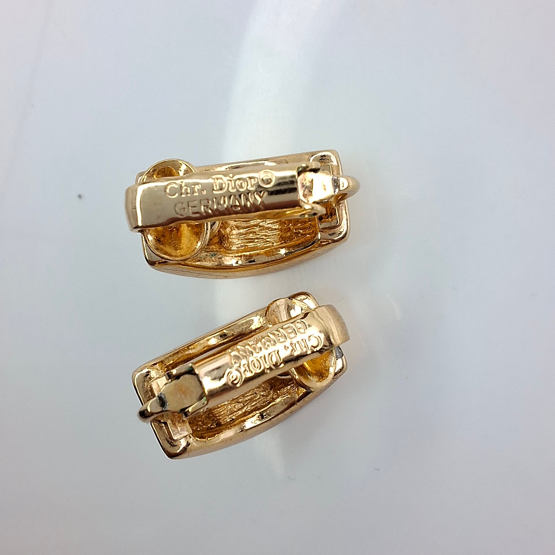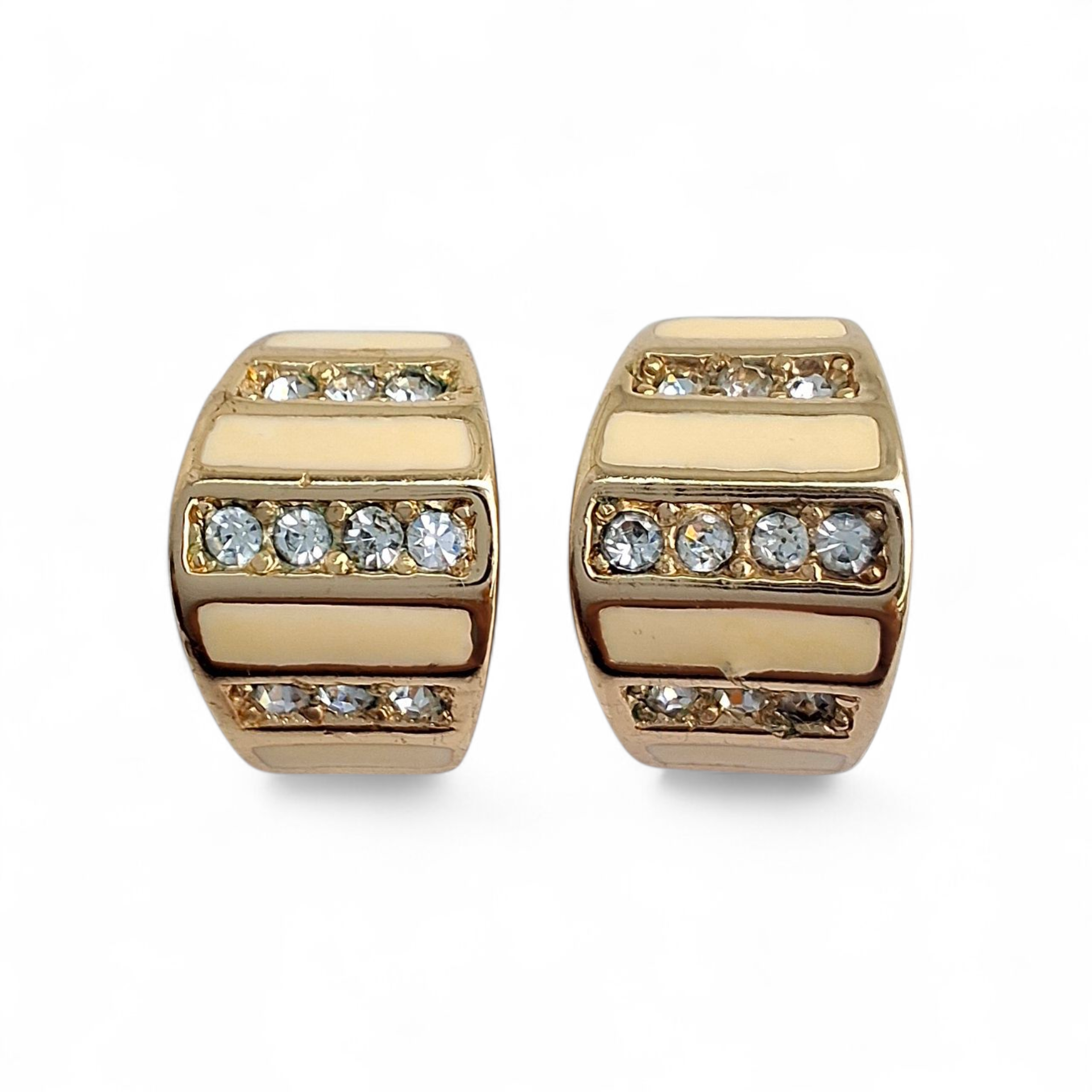 Vintage Christian Dior cream enamelled clip-on earrings with gold detailing and diamante insets. Each stamped Chr.Dior. GERMANY. 1.6cm x 1.1cm.