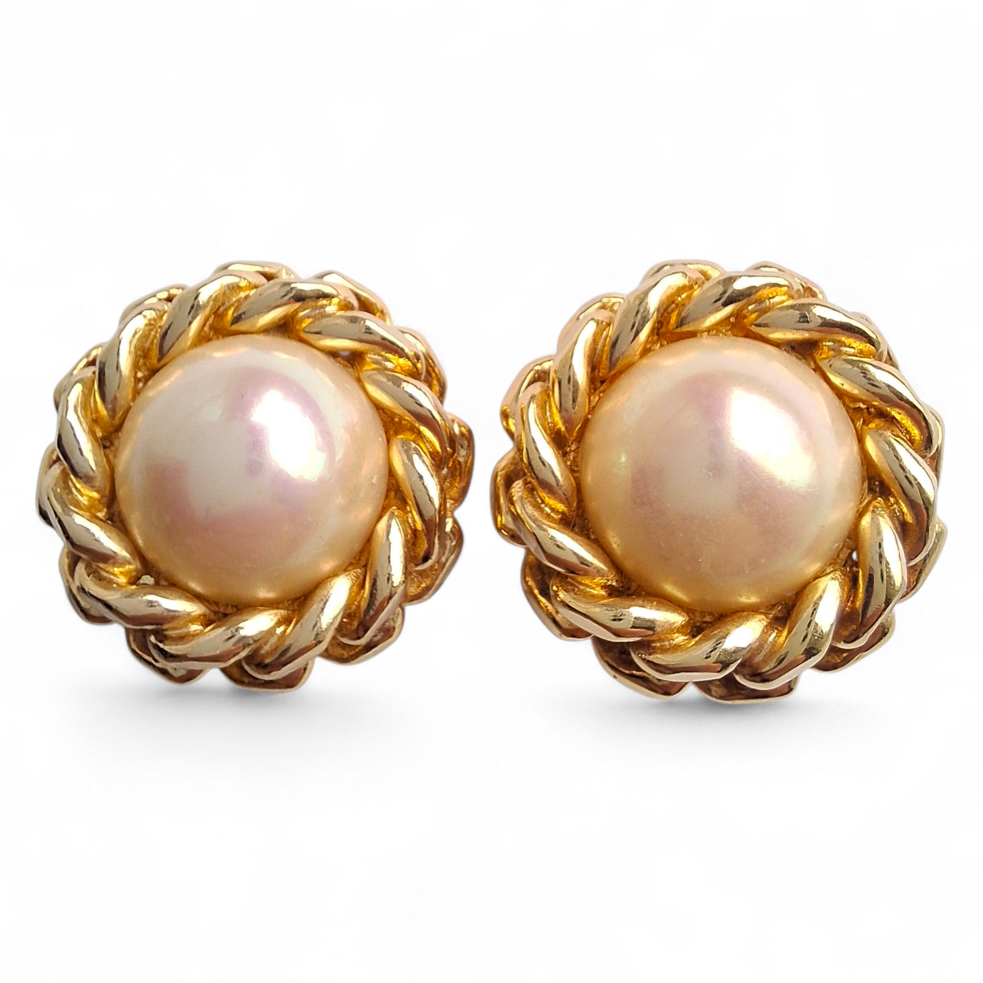 Classic Christian Dior faux pearl clip-on earrings. 2.5 cm diameter.