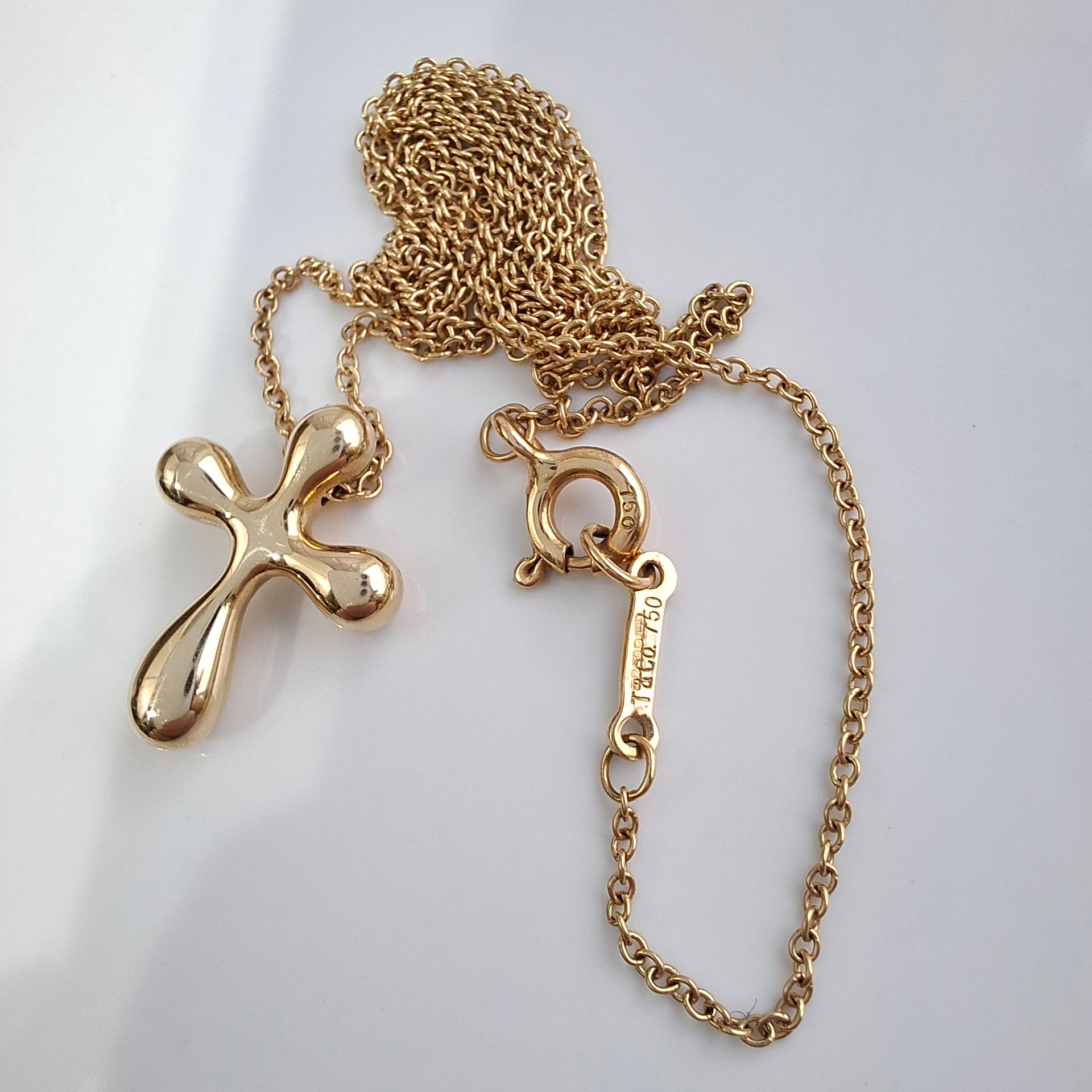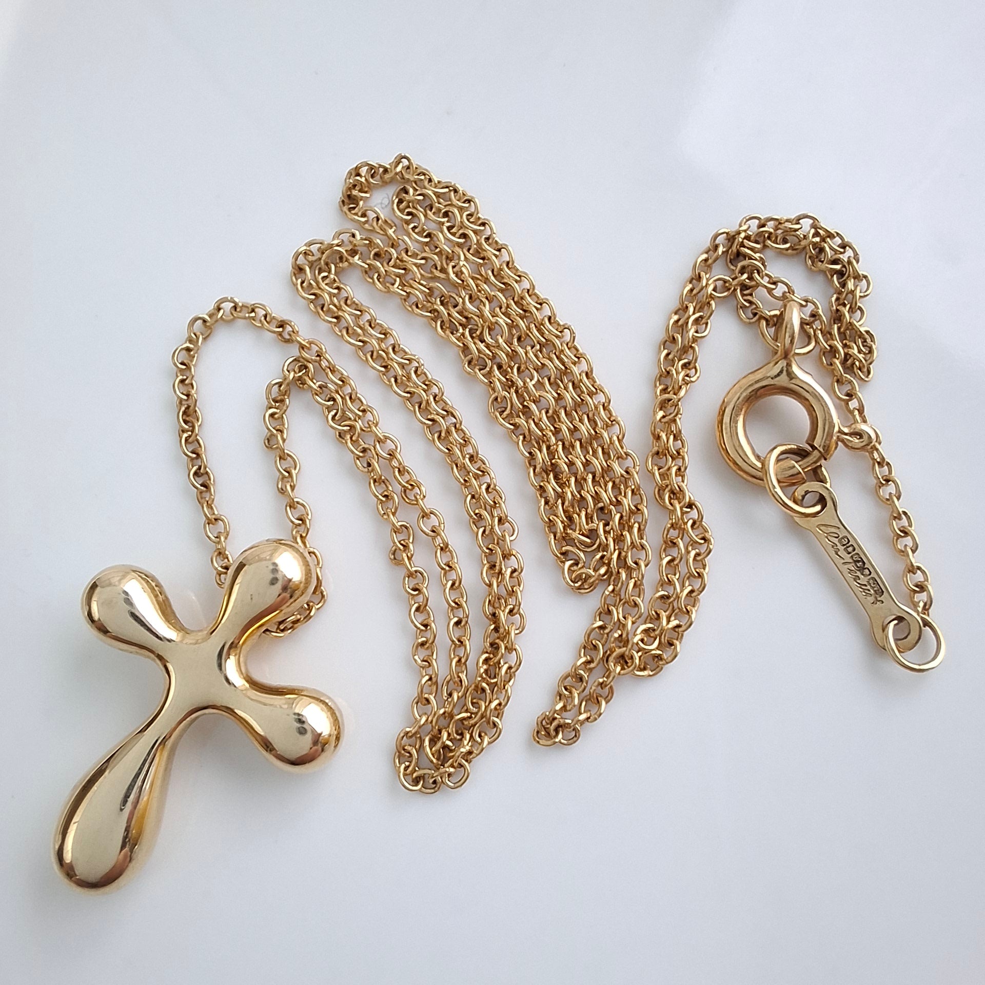 Vintage Elsa Peretti Tiffany & Co Hallmarked 18k Solid Gold Cross Pendant Necklace
