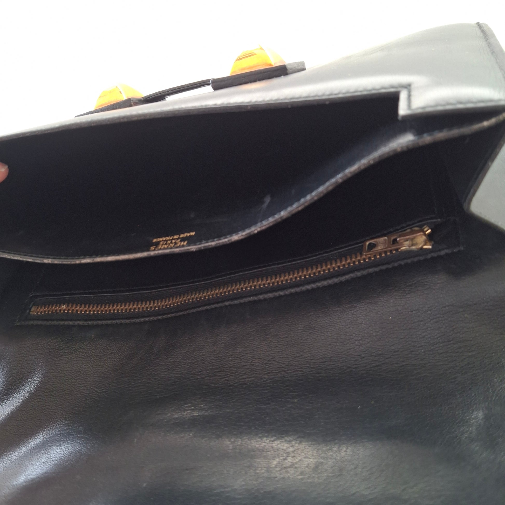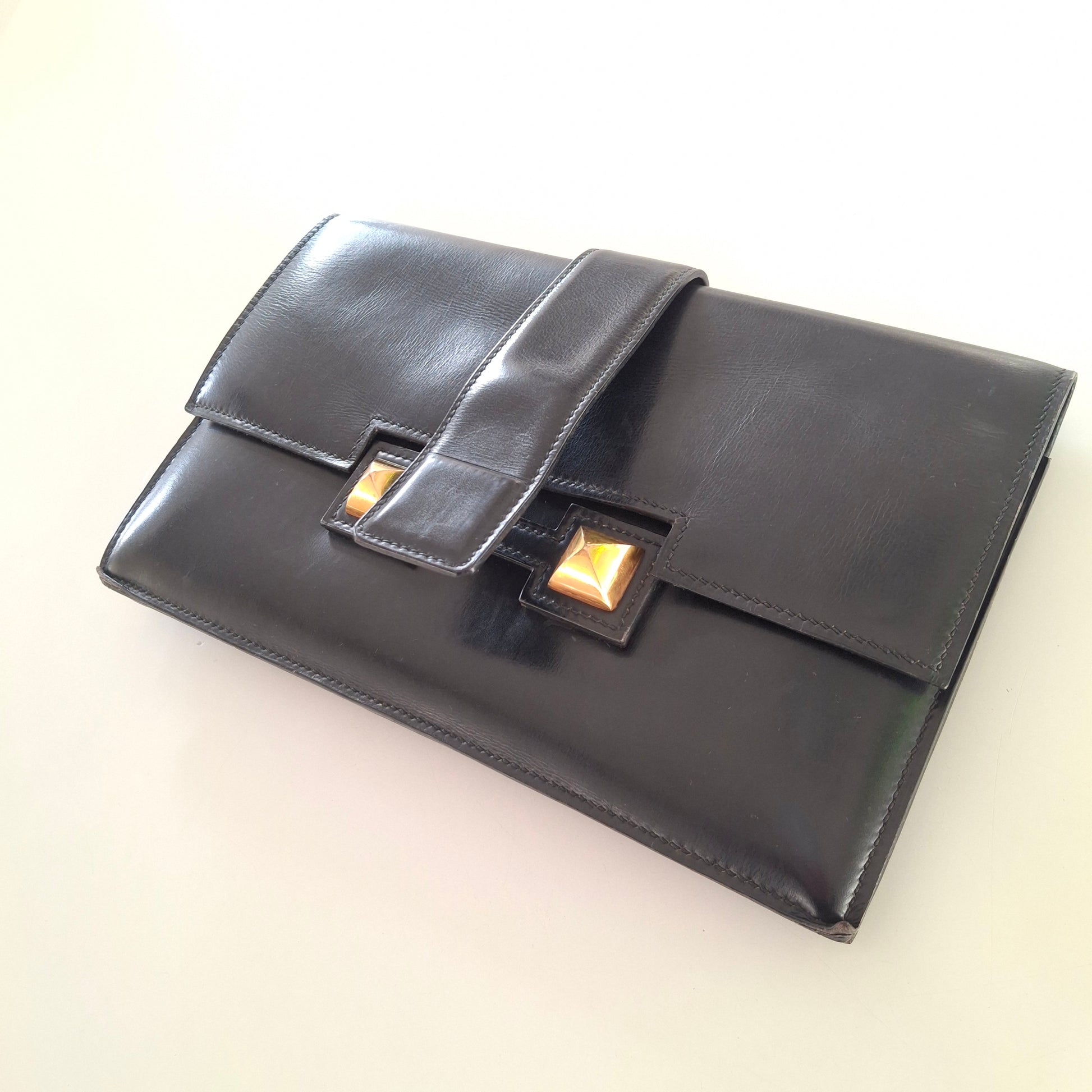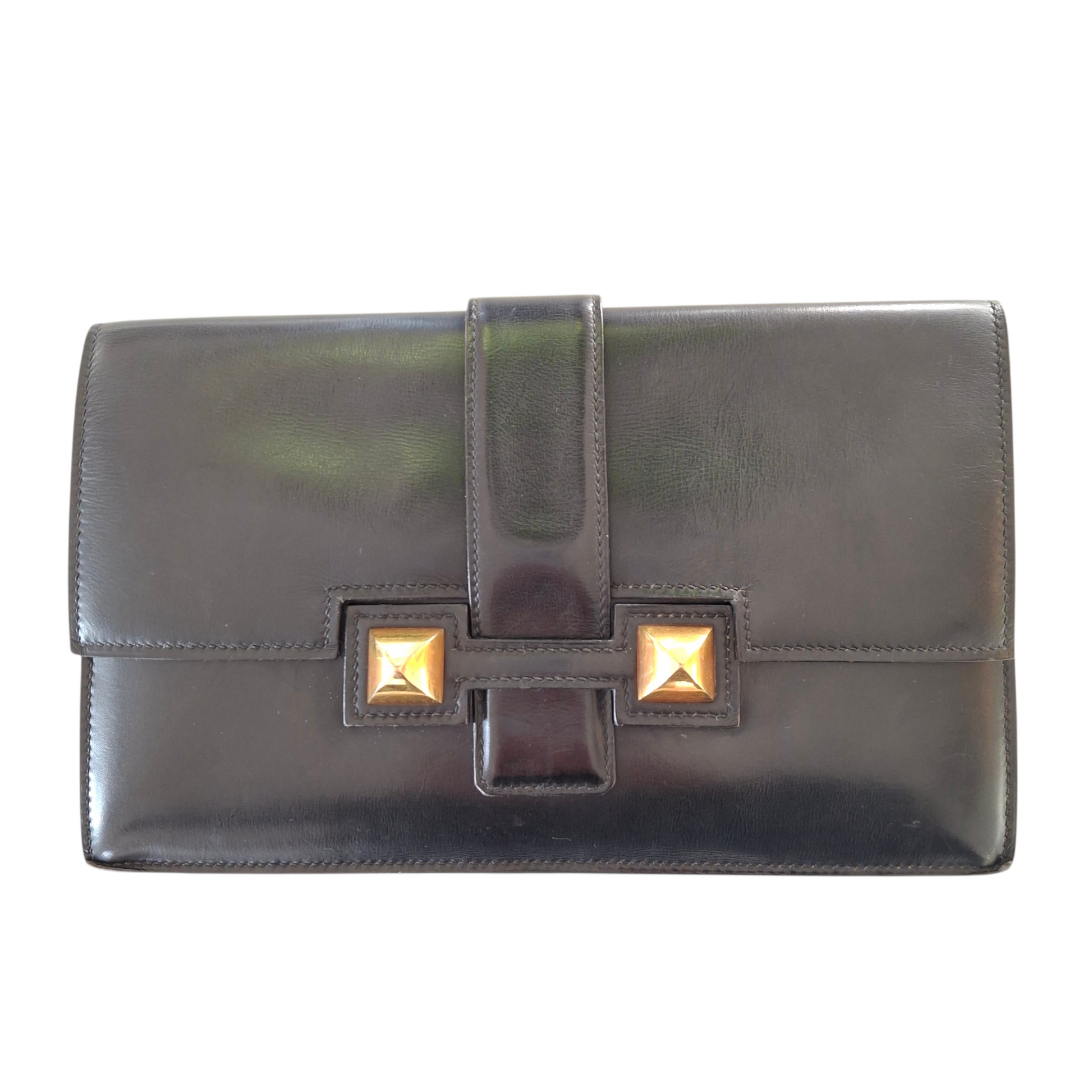 Vintage Hermes Medor black leather Clutch Bag. 24cm x 15cm.