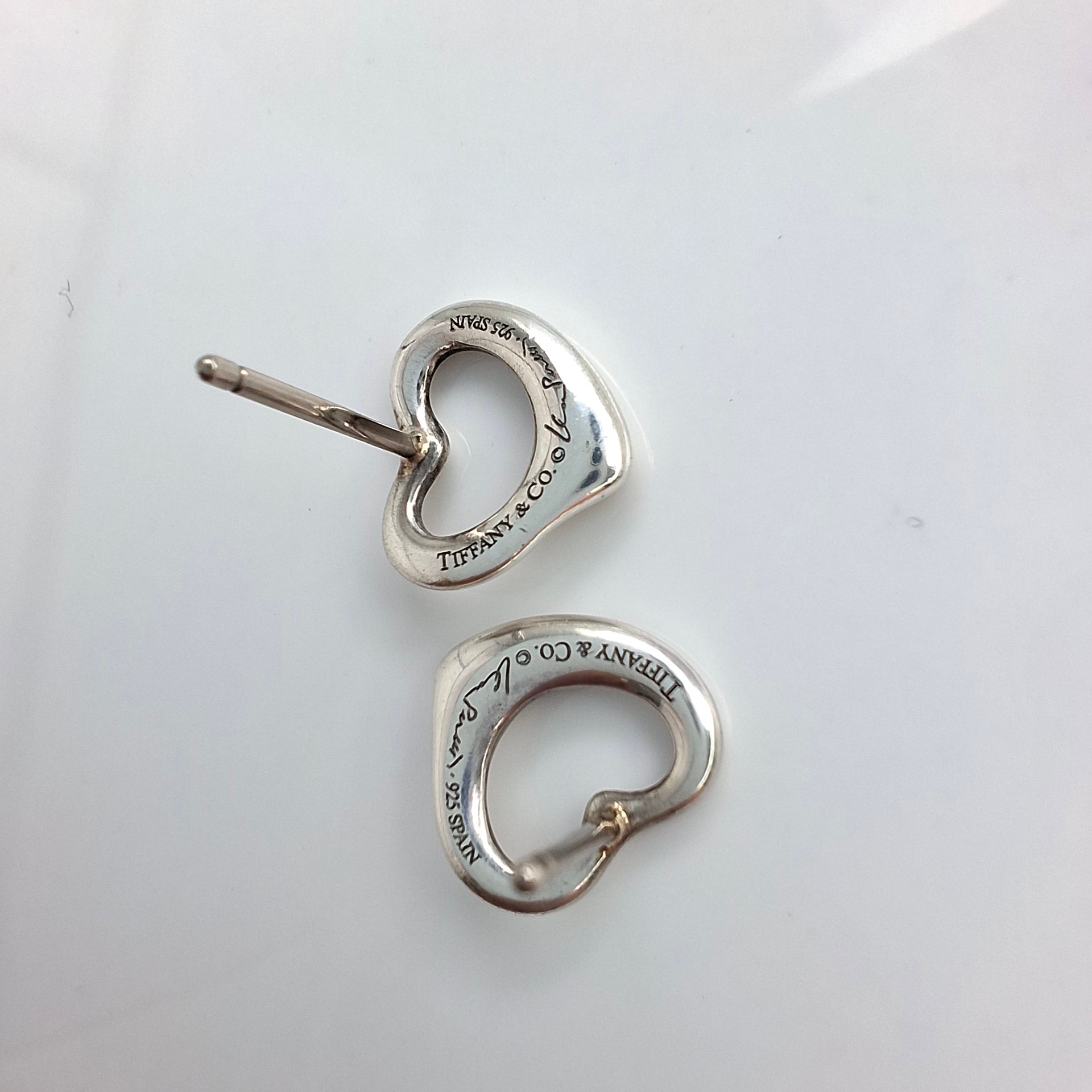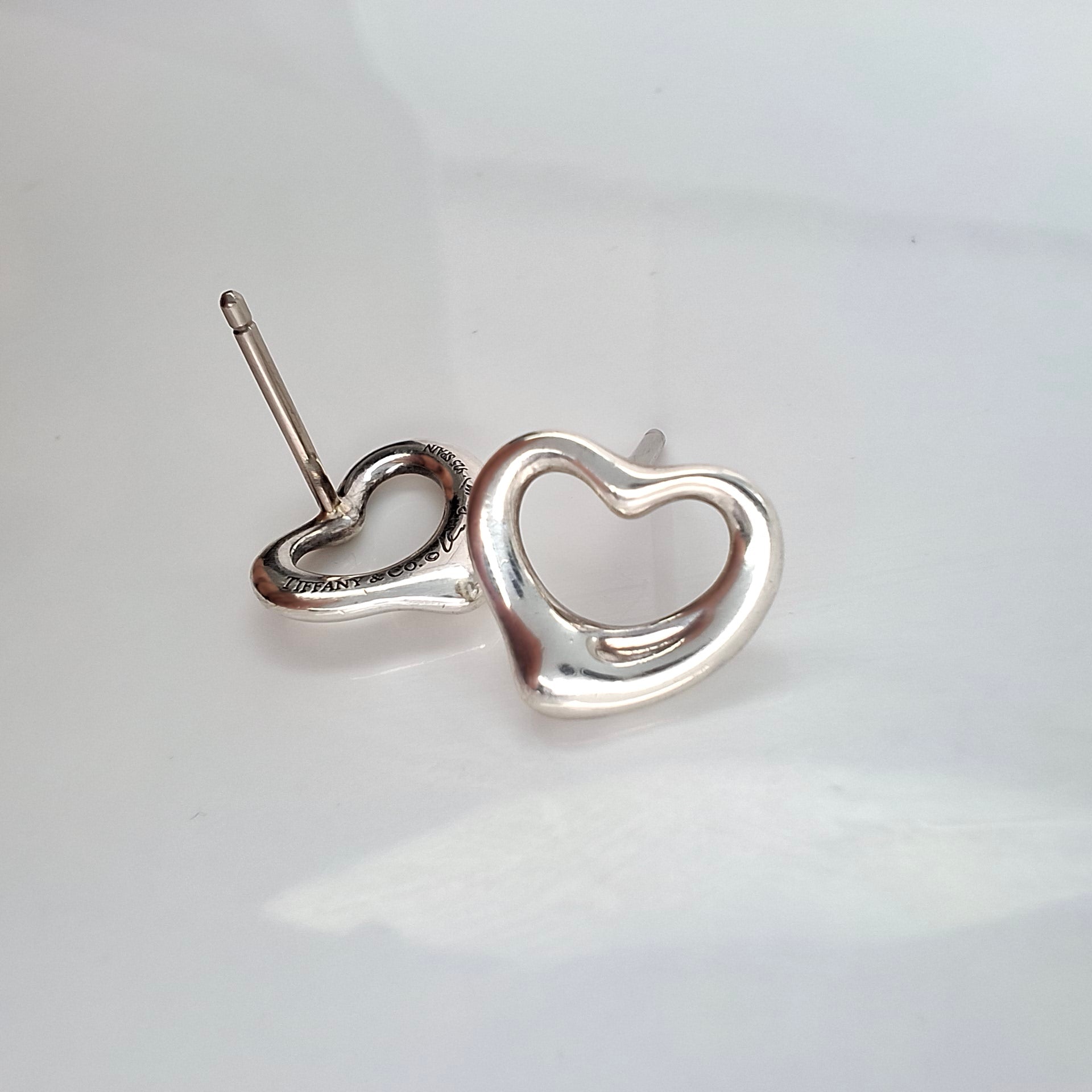 Vintage Tiffany & co Elsa Peretti Open Heart earrings in solid 925 sterling silver. Each signed copyright Elsa Peretti and stamped Tiffany & Co. In excellent condition, the butterfly fasteners are new replacements. 1.1cm x 1cm.