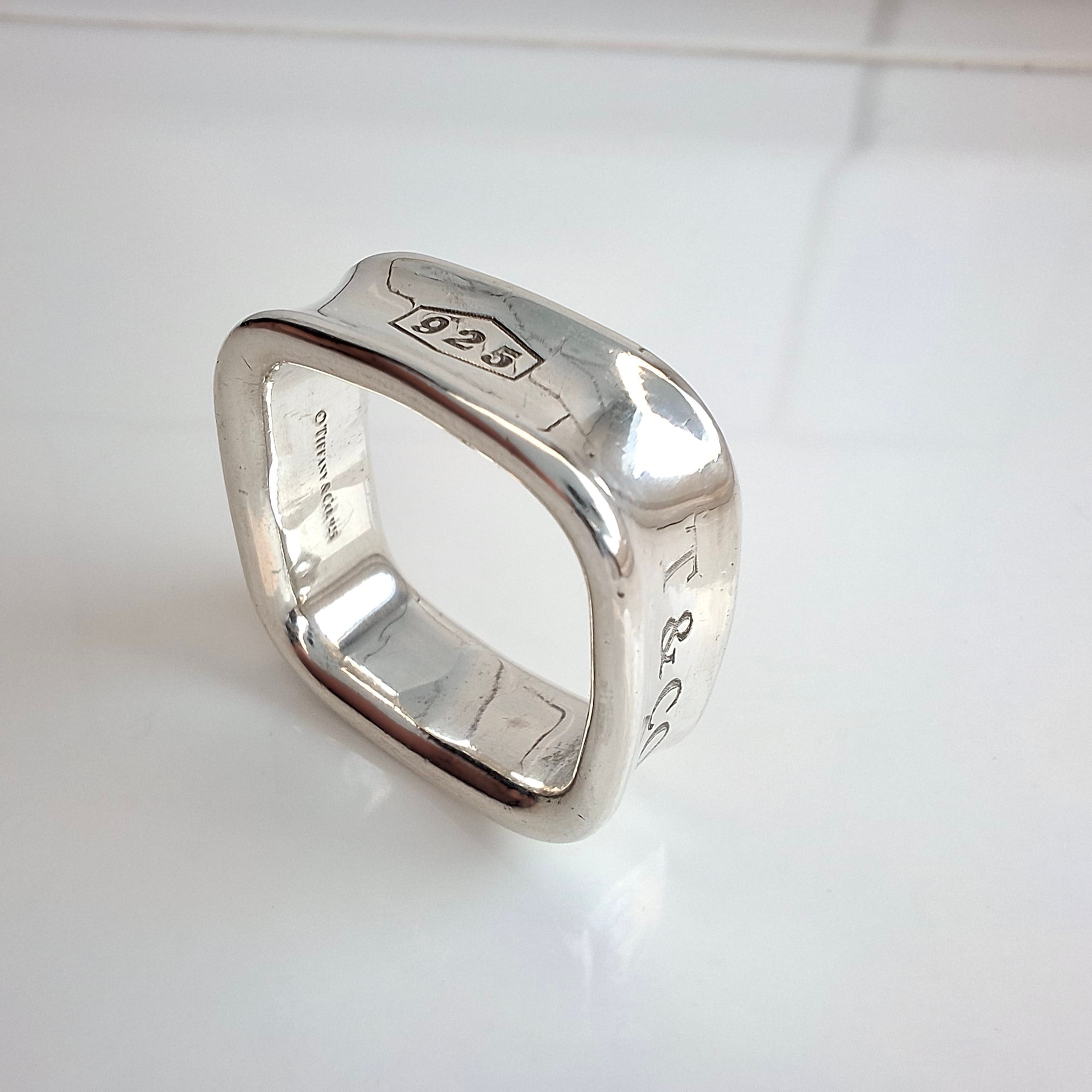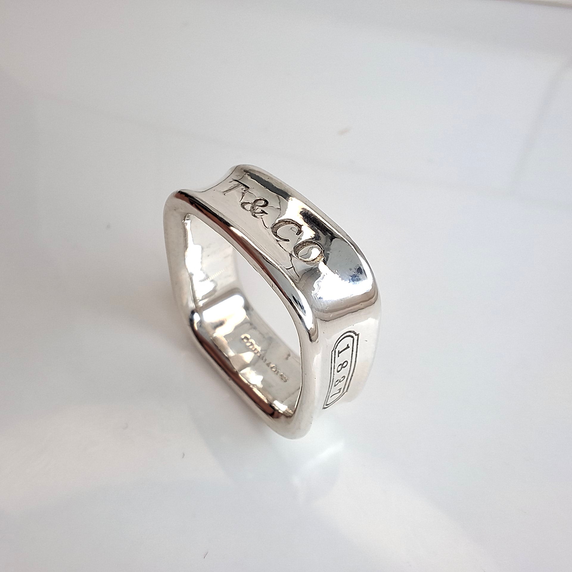 Vintage 1837 square ring by Tiffany & Co. in solid 925 sterling silver. With original box and pouch. UK ring size L.