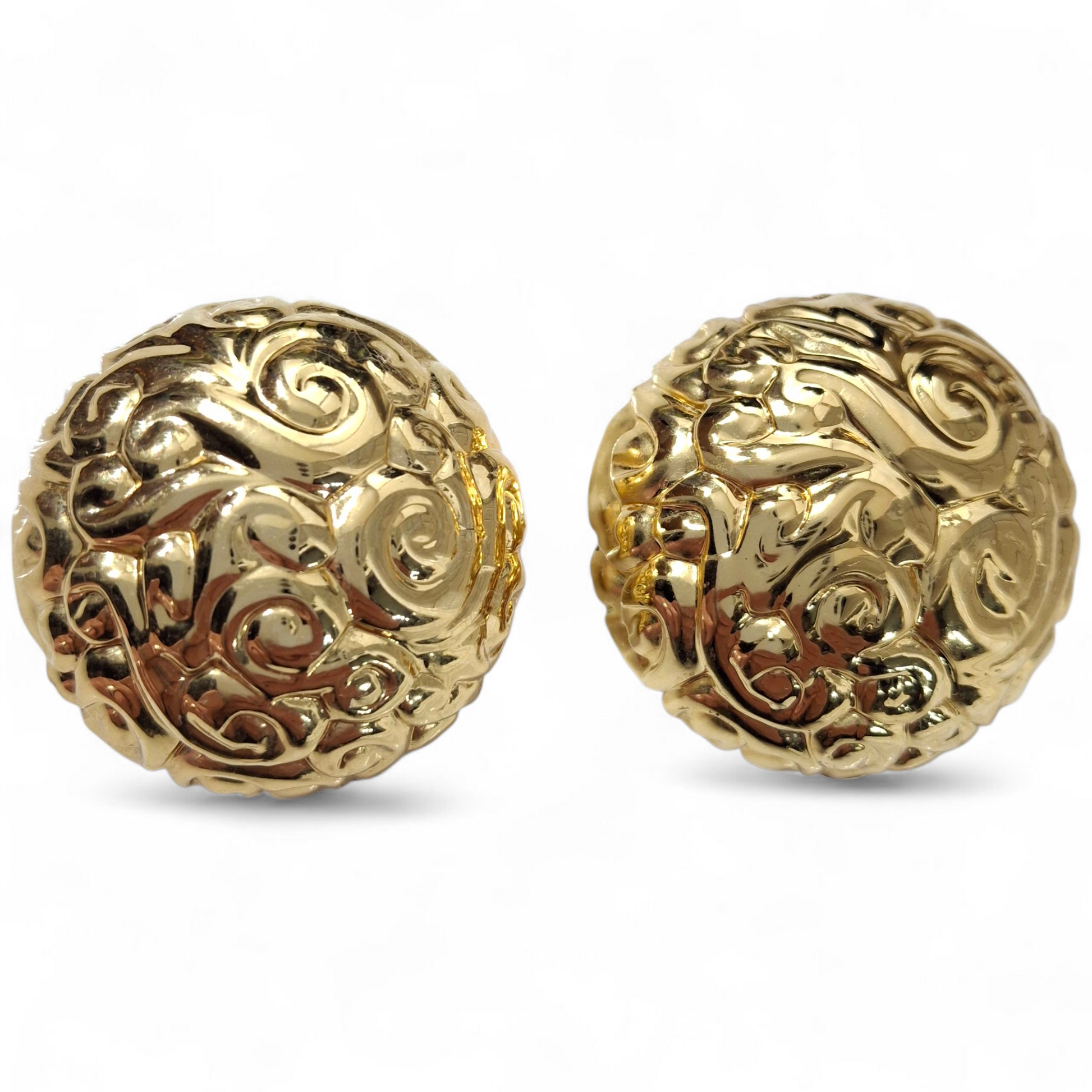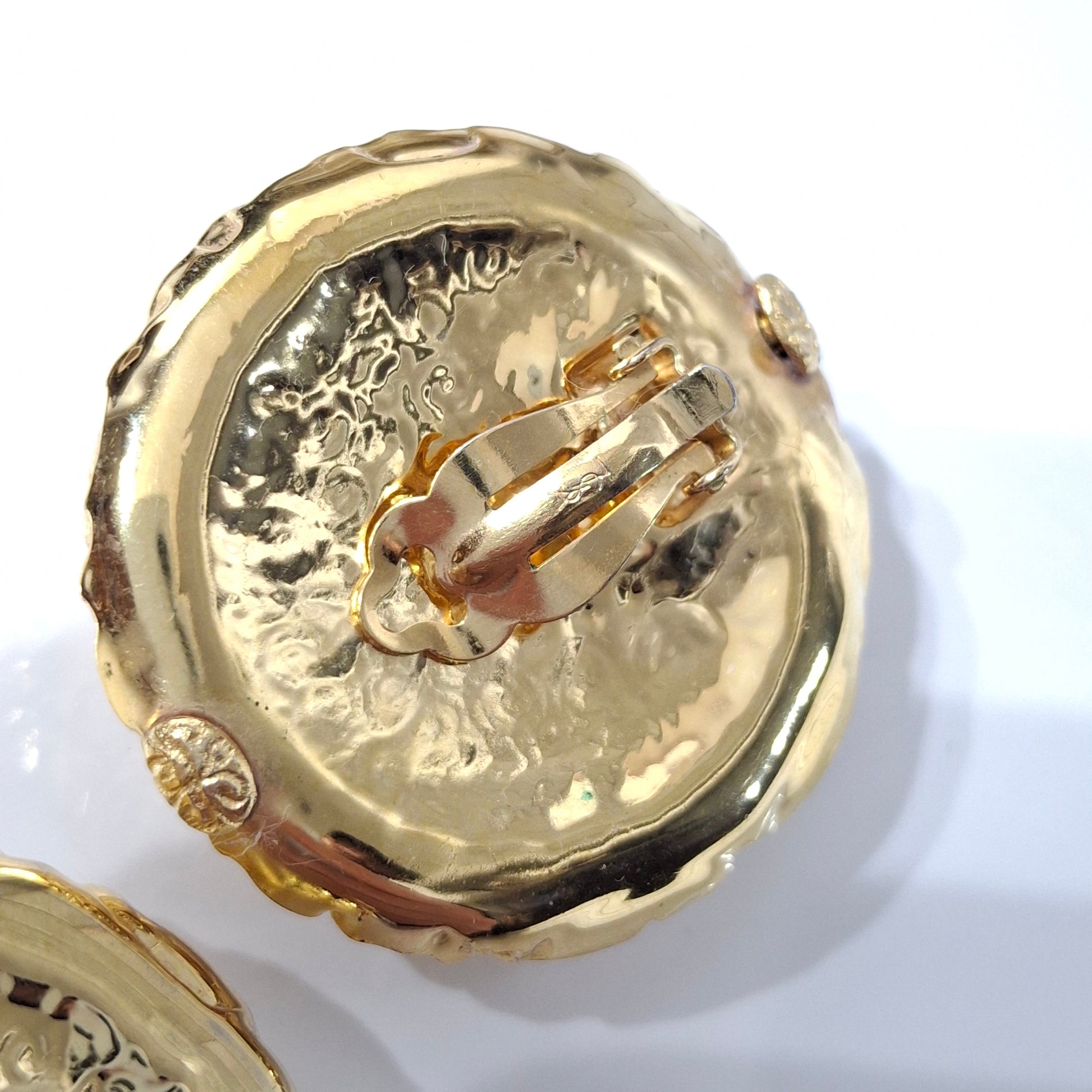 Vintage YSL clip-on earrings. The larger 4.3 cm version. Hollow gold plated metal, fairly lightweight. Excellent condition, eached stamped YSL to the clips.