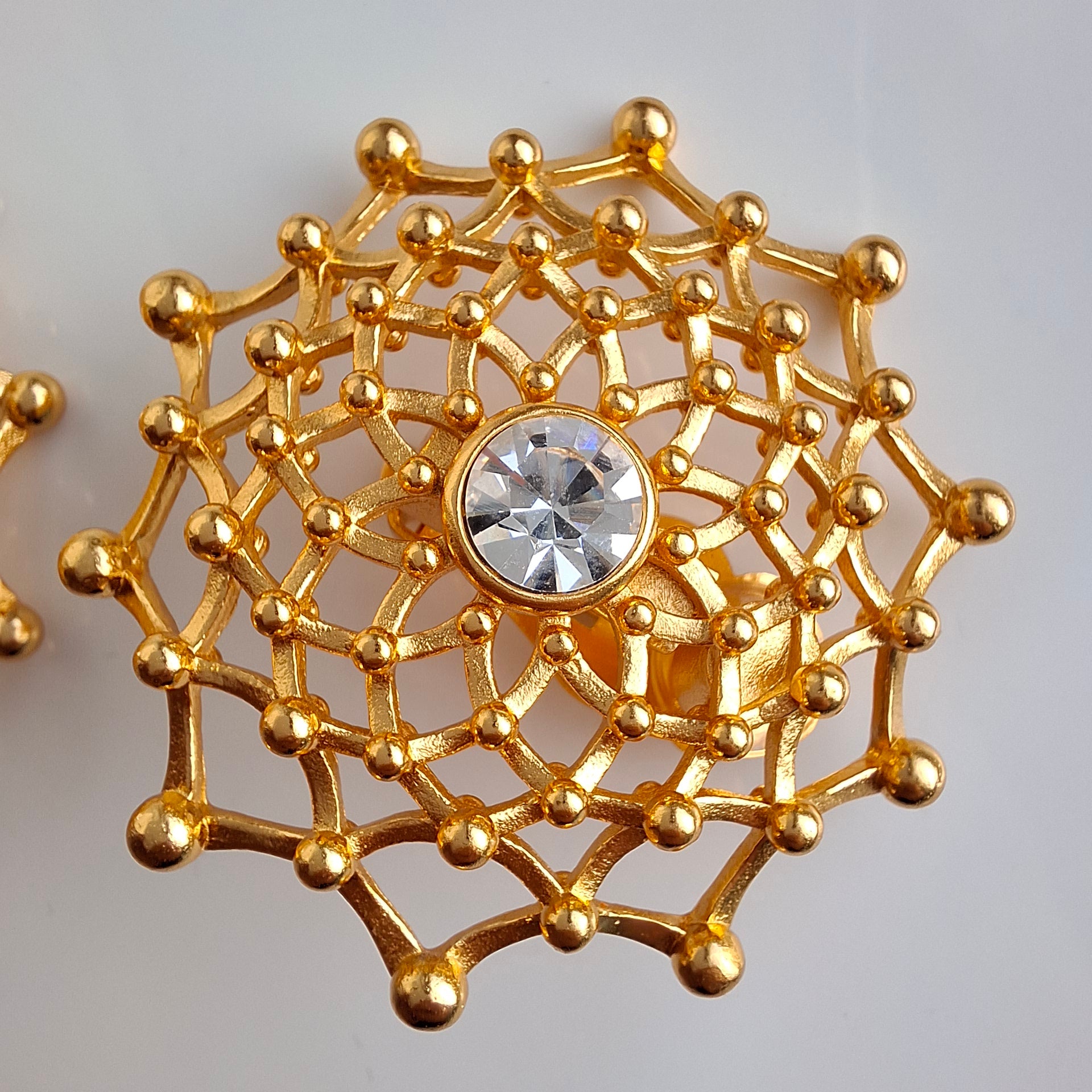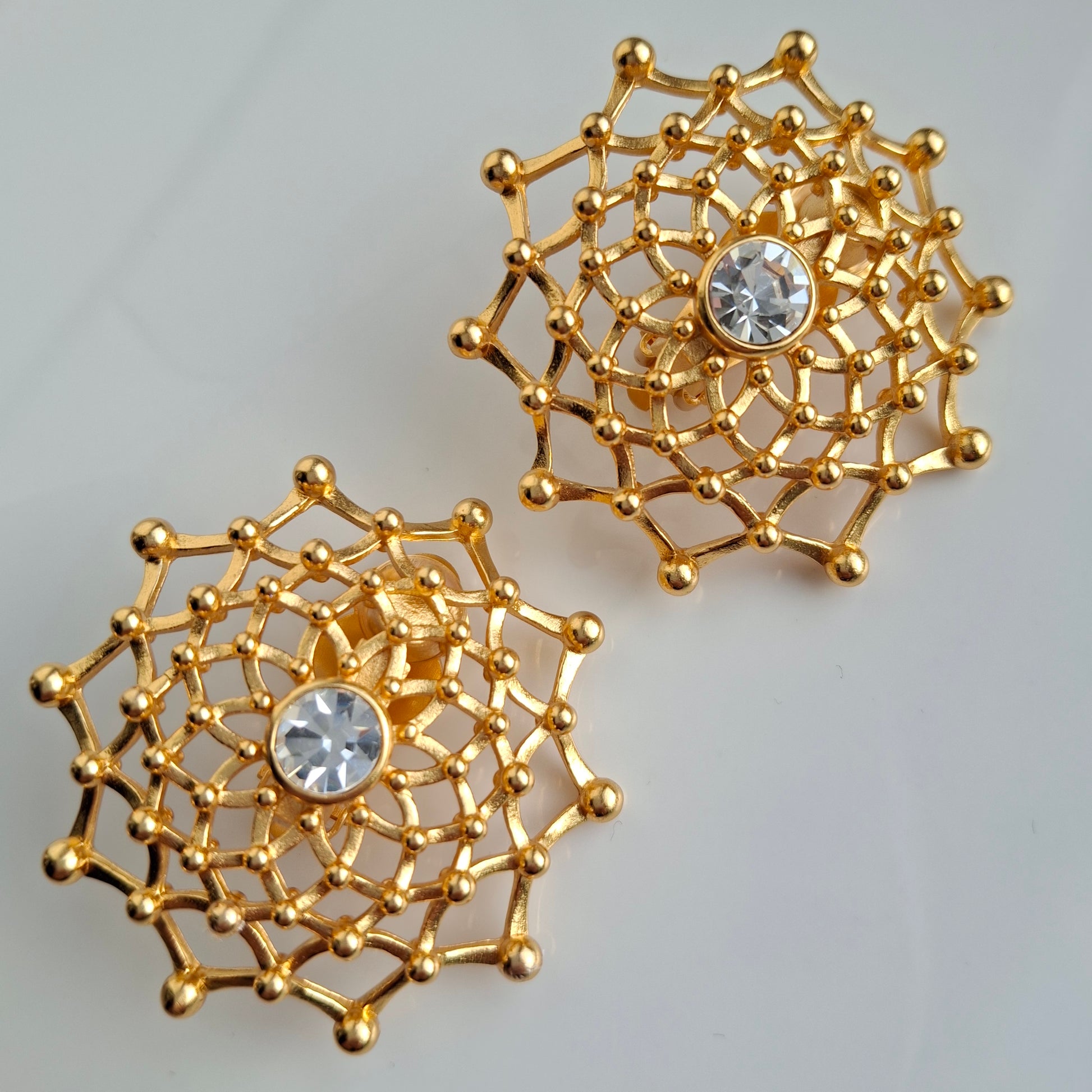 Yves Saint Laurent earrings in gold plated metal with central crystal. Excellent condition with box. 4.3cm wide.
